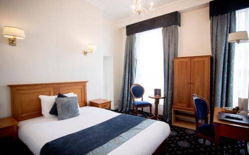 The Castle Hotel, located at the northern end of O'Connell St., has a bit of a split personality. It’s housed in a Georgian building and generally decked out in the kind of ornate décor that might inspire one to run out and buy a corset, but some of its 131 rooms are plain Janes.