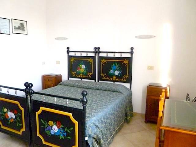Each of Merlini’s 11 rooms is simple, bright and furnished with charming flea-market finds. Picture terracotta floors, painted bed frames and antique desks, chairs and bureaus. All rooms are air-conditioned and equipped with TV and free Wi-Fi. The bathrooms are medium-sized and outfitted with clean, new fixtures and appliances.