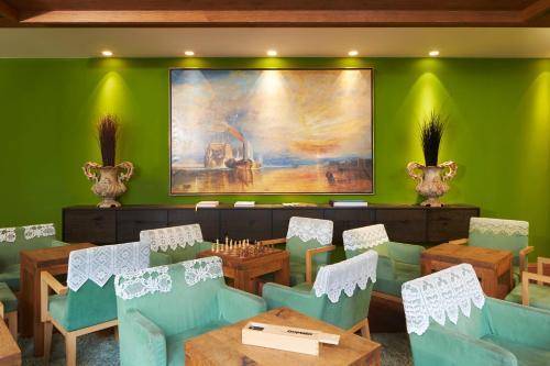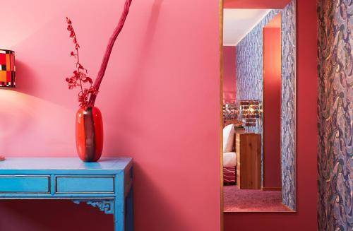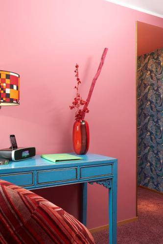 Each of the 25h Goldman’s colorful rooms was designed by a different Frankfurt artist, and not one is for the faint-hearted. Proof positive: The receptionist will inquire which color you like before suggesting a room. Whether you go with red or yellow or gray, you’ll find funky collages, bold patterns and retro furniture fitted into your (somewhat tight) quarters.
