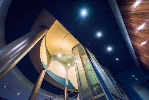The stately “Fazy-era” (radical leader James Fazy played a major role in shaping the city during the mid-19th century) building, a style typical of upscale lakeside properties on Geneva’s left bank, promises a classy experience. But the dark, narrow entry next to a pizzeria is less than impressive. Likewise, funky yellow chairs in the lobby hint at retro-chic interiors, while rooms are simple yet updated with industrial designs on the walls.