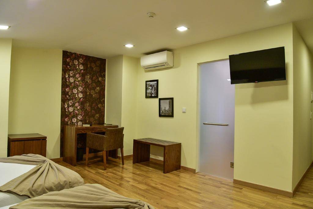 The hotel’s rooms are simple affairs, with hardwood floors, wooden furniture and recessed lighting. All 96 are equipped with air conditioning, soundproof windows, a satellite television and telephone.