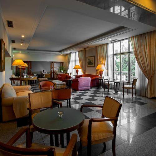 Of the 36 rooms, the 16 with views of the Praça are the most expensive. All, however, are adequately spacious and decorated in rather attractive (if unexciting) cream walls and pink carpets, dark wooden furniture and some “deco” touches. All rooms have a flat-screen TV, telephone, air conditioning and minibar. Bathrooms are equipped with either a shower or tub (ask ahead), hair dryer and toiletries. Certain rooms facing the square to the back have small balconies.