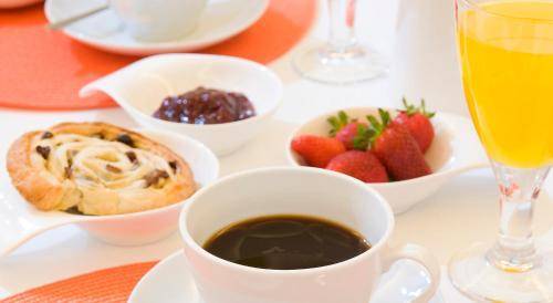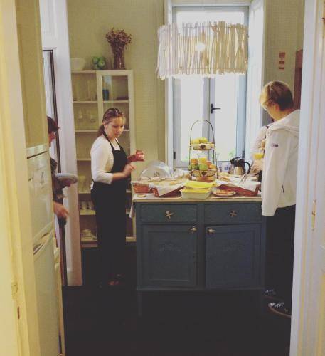 Breakfast is included in the room rate and served in the cute dining room, decked out with white tables and Ikea-stylish lamps. A communal kitchen is also available to guests throughout the day.