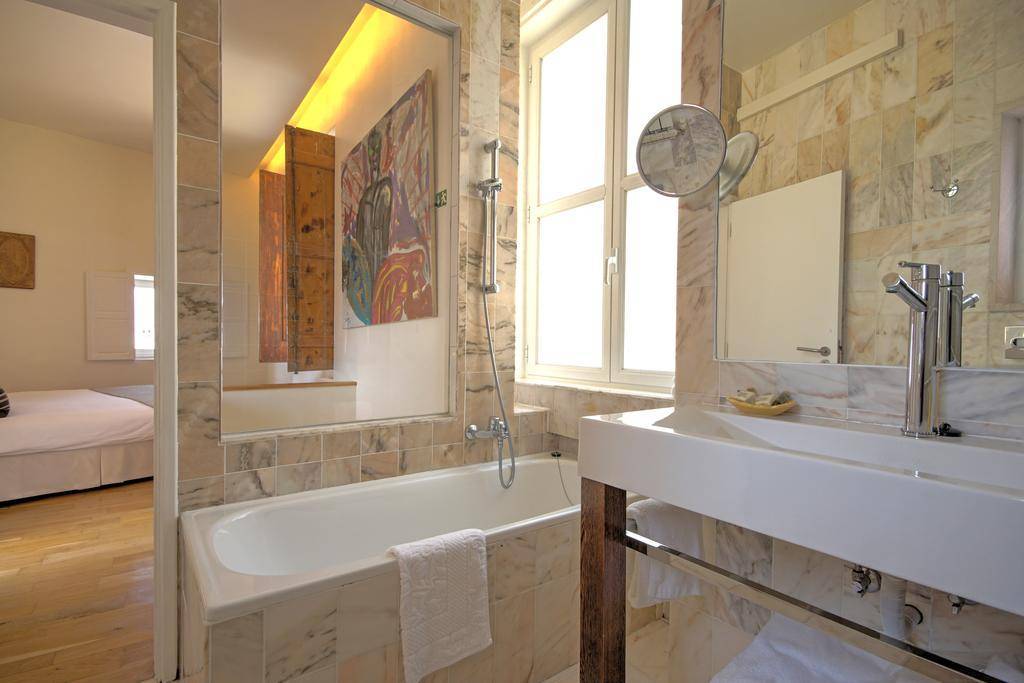 In general, rooms are spacious and airy with hardwood floors and large windows. Stereos, books and chic seating keep it stylish. All rooms are air conditioned and outfitted with television, phone and minibar. An attic room offers awesome bird's-eye views and an incredible bathroom, though the very low ceiling is better suited for shorter guests.