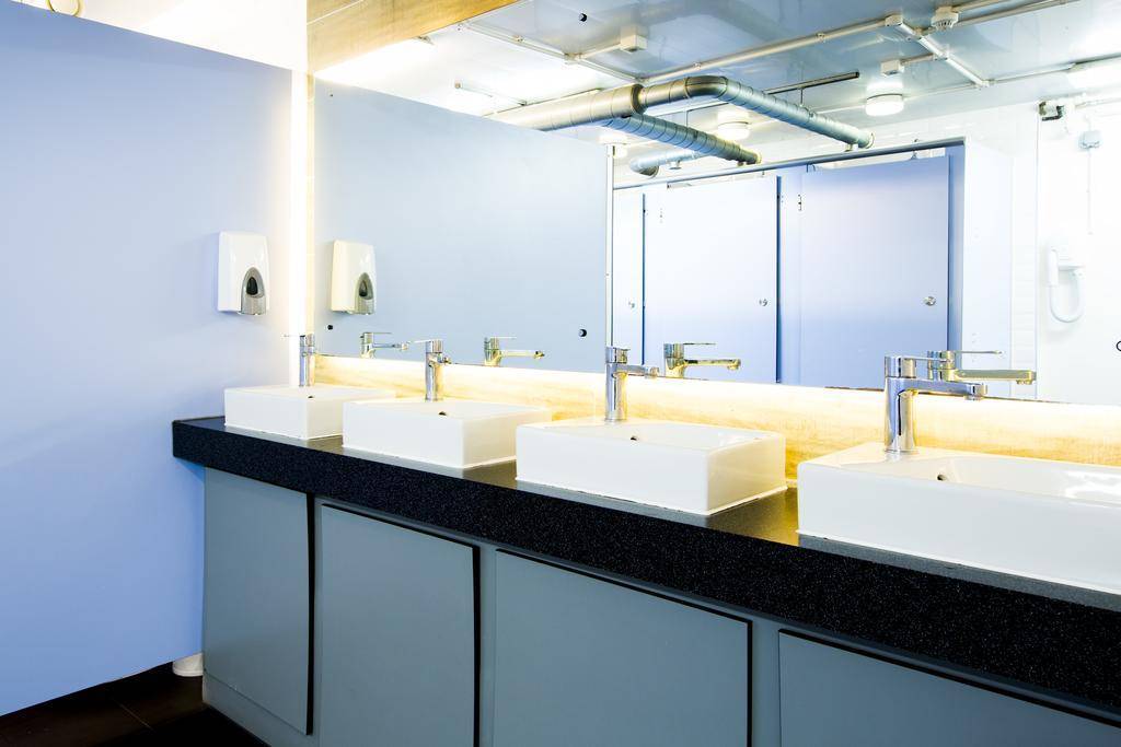 The shared bathrooms are clean and well equipped to handle a huge number of guests. Note, though, that they don’t provide a ton of privacy. The stall showers are blocked off by curtains (not doors), and there’s no secure place to stow your dry belongings. Towels are provided for guests of single or double private rooms. All other guests can rent towels for an additional (if pricey) fee.
