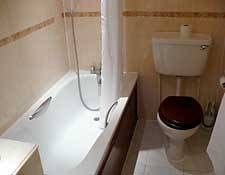 Thirteen rooms have private bathrooms while four singles share facilities. The bathrooms are relatively good-sized, given the compact rooms. They are clean and tiled, some with bathtubs (ask ahead).