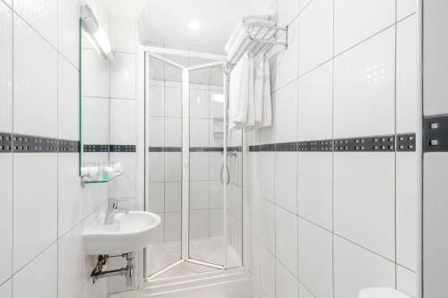 Newly renovated baths have fresh tiling, new showers (no bathtubs), fluffy towels and toiletries.