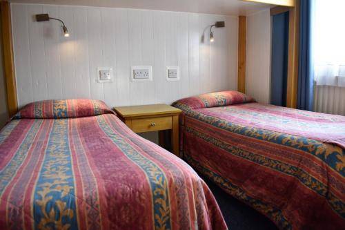 The MacDonald Hotel's 30 simple rooms are clean, quiet and functional. Décor is simple, and there’s a mix-and-match color scheme at play: peach-colored walls, red or green patterned bed covers, blue carpets and floral curtains. All rooms are outfitted with TV, coffee/tea maker and fan.