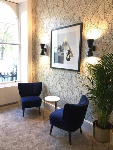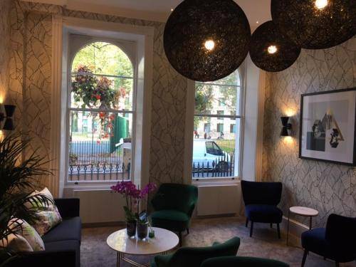The Mentone Hotel is situated in a 19th-century building within Cartwright Gardens, a lovely Georgian crescent of historic homes. It overlooks the private garden and tennis courts, both of which guests can access.