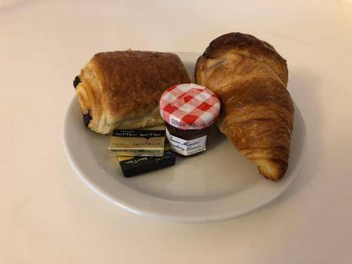 Breakfast, sometimes included in the room rate, is served in a bright dining room decorated with blue leather booths, bold tile flooring, and more patterned wallpaper. Wi-Fi is free throughout. Note that the hotel does not have an elevator.
