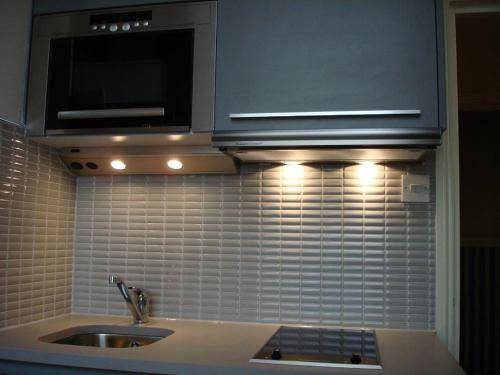 The arrangement places a kitchenette in every apartment, a nice perk good for independent travelers who want to shop for food at supermarkets. Kitchenettes break with the design motif—instead of the prim color coordination and restrained girliness otherwise on display in rooms, they consist of modern appliances.