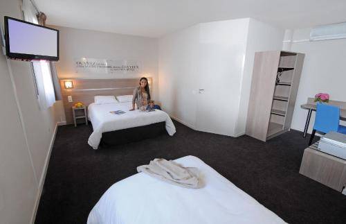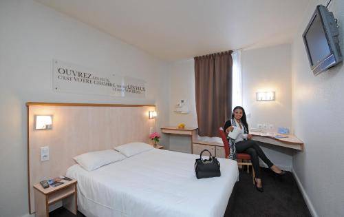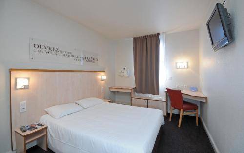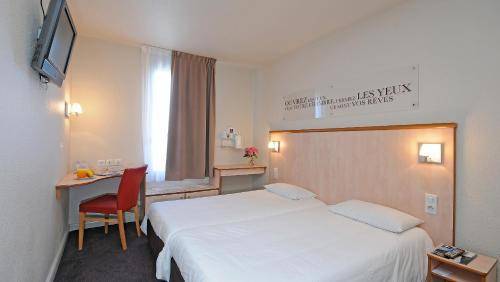 The 50 rooms at the two-star Kyriad Lyon Croix Rousse are located two blocks from the Croix Rousse Hospital in a residential area of the city.