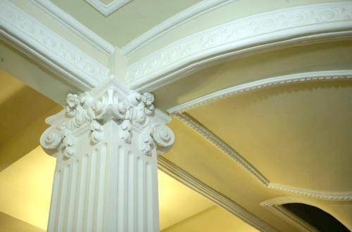 Rooms are square and decently sized, with high ceilings and wooden headboards. The furniture is new as well. Although the building is historic—Spanish nobles once stayed here—there's a uniquely modern touch to each room, with large original art and minimalist furniture.