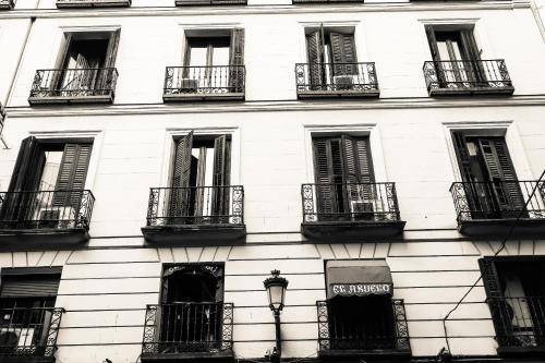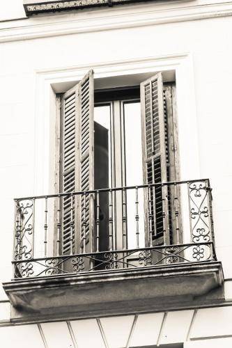 The hotel is located on Calle Huertas (a narrow street near Plaza Santa Ana which is host to late night partying) not far from Plaza Sol. Rooms are quiet, and exterior rooms all have balconies.