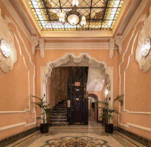 The Santillan is housed in a beautiful 1920s apartment building, boasting an impressive marble, mosaic and stained-glass entrance hall. (We couldn't help snapping a few photos of the entrance for our own scrapbook.) Rooms are nestled eight floors above, and are perfectly acceptable and simply decorated.
