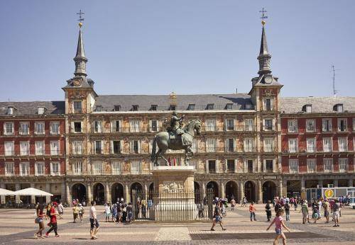 0.3km to city centerThe Puerta del Sol is the geographic and historic center of old Madrid. Located within walking distance of most of central Madrid's tourist offerings, it's an obligatory stop for all visitors to Madrid. Calle Mayor, a major commercial and business street, runs to the west of Puerta del Sol, and from the south branch a gaggle of tiny, dense streets packed with tapas bars, restaurants and cafés. Many of Madrid's best hotels are on the Puerta del Sol, while pensions can be found along the side streets.