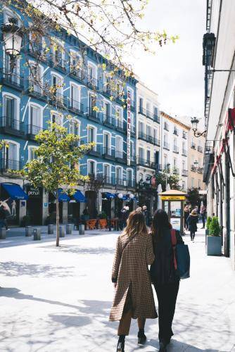 The hotel sits squarely on a pedestrian street between Plaza Santa Ana and Plaza Jacinto Benavento. A well-known jazz bar, Café Central and tapas bars sit adjacent to it. And five minutes south is Plaza Sol.