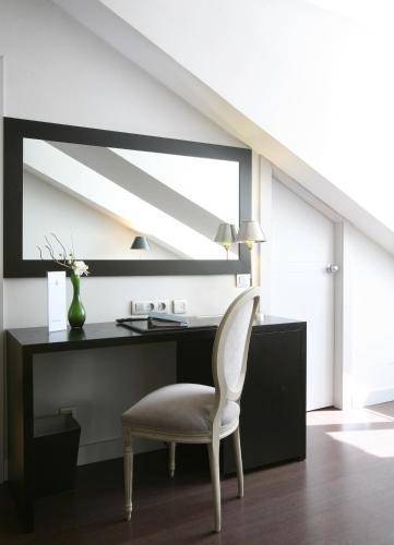 Rooms are decorated with in warm, earthy tones. In common spaces, the building's 1860 integrity has been left virtually untouched, with preserved details such as antique vents as decoration along the wooden staircases. Guests choose pillows from the hotel's pillow menu and rest easy on hydraulic mattresses. In the bathroom, hydro-massage showers and telephones are a given. There are double sinks and showers built for two. Plasma televisions are outfitted with DVD players. In addition to providing Wi-Fi free of charge, the hotel offers its guests laptops to use during their stay.