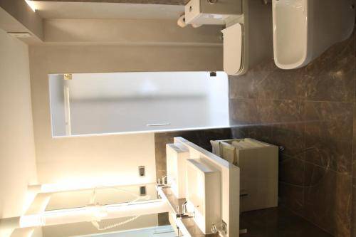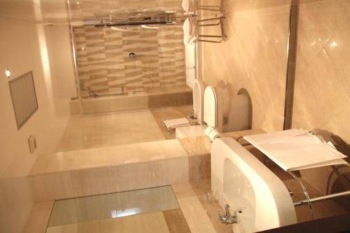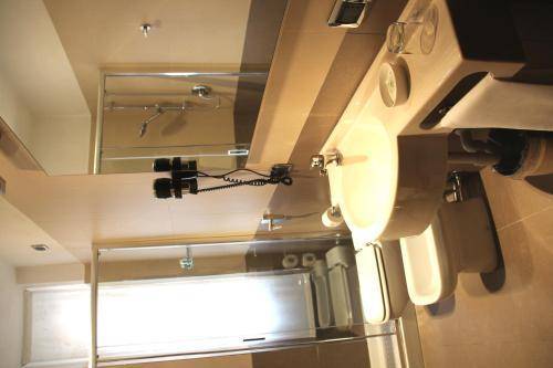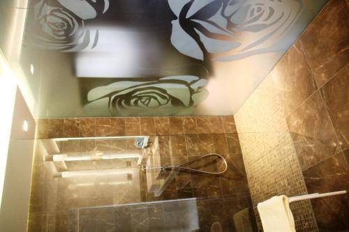 The spacious and sparklingly clean private bathrooms have new appliances and pink marble tiles.