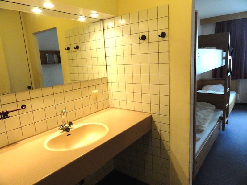 Rooms here are very, very simple but recently updated. They include single private rooms with bathrooms, family rooms with bunk beds, and shared dorms with three or four bunk beds, all of which are equipped with a sink. Rooms share two toilets and two showers on each floor. Given that about 30 people per floor share these facilities, we found this ratio a bit tight.