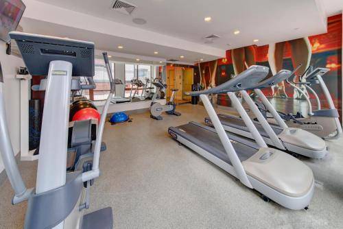 Immaculate, contemporary rooms with stunning private baths are what’s on offer at Hotel Indigo. Rooms are dressing in soothing palettes of gray, white and beige. Amenities include flat-screen televisions, free Wi-Fi, coffee machines, air conditioning and toiletries, among others.