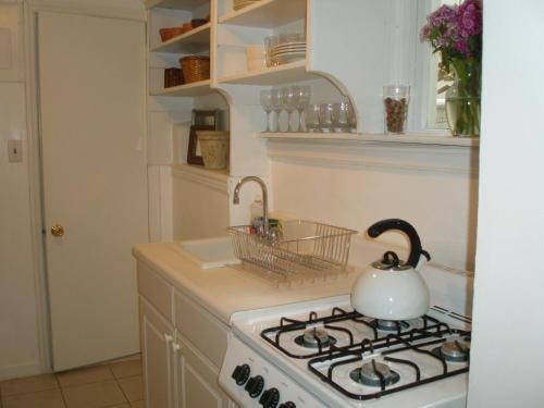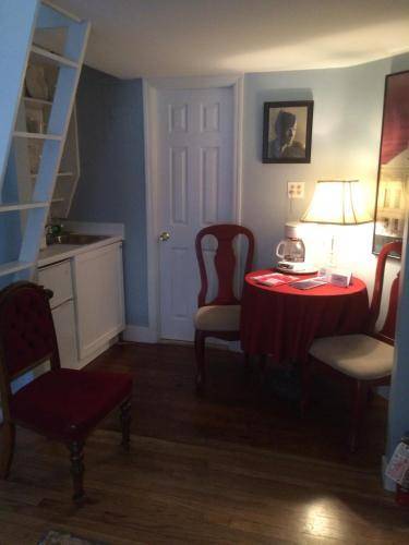 All studios have air conditioning, television and coffeemakers. (Many are also equipped with a kitchenette.) En suite bathrooms are standard, and some have bathtubs. One apartment, the “Bishop's Suite,” is larger, on two levels, and has private access to a back garden.