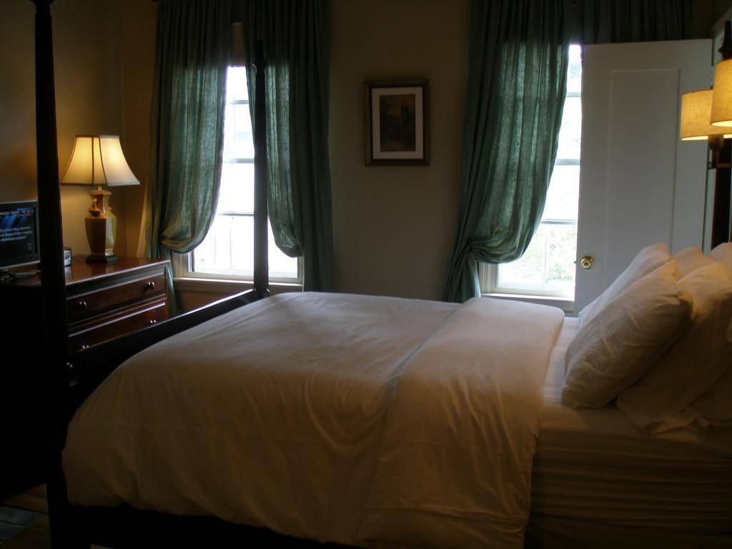 We scaled a cramped, old staircase to a gorgeous room with a sleigh bed draped in burgundy sheets. Here, a bookshelf of fine literature overshadowed the small television. And the delicate tables, immense dressers and tall candleholders on the mantle were typical of décor throughout the property.