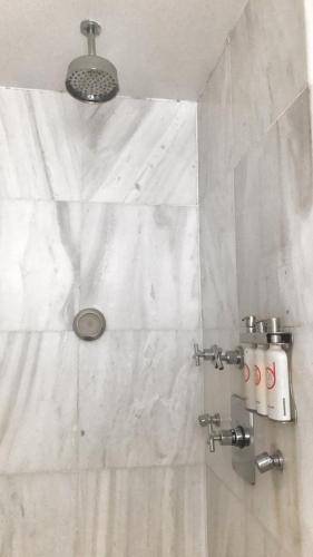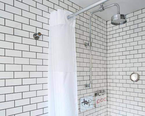Either way, bathrooms are tiny and sport lovely black and white tiles. And even shared bathrooms are cool, with in-room displays that indicate which are available.