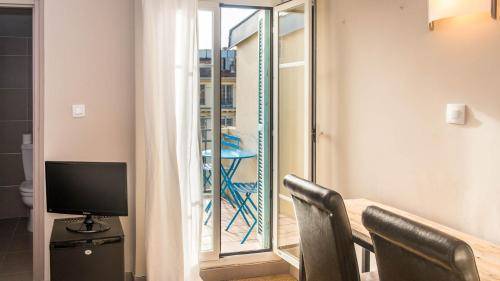 The Solara's rooms are adequately sized and painted fresh white. Linens are quite thin, but luckily you don’t often need a big duvet on the French Riviera. Rooms are equipped with television, air conditioning, mini-fridge, free Wi-Fi and soundproofed windows. The bathrooms are large and the shower doors boast dated, yet fun, designs.