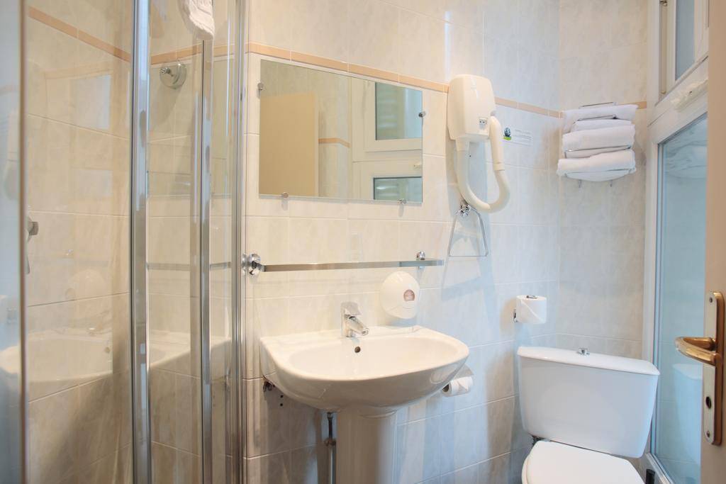 The private bathrooms were also renovated and now boast attractive and colorful tiling. Showers and bathtubs are available, and all provide a hair dryer.