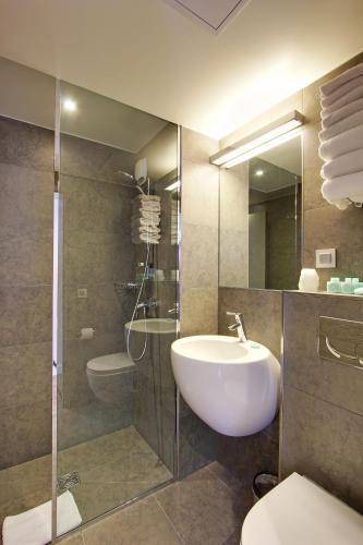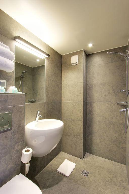 Bathrooms are equipped mostly with showers, although some bathtubs are available in triple rooms. Note that many bathrooms are quite small. While many hotels have small baths in Paris, you might want to inquire about a room with a larger bathroom when reserving if this is a priority for you.