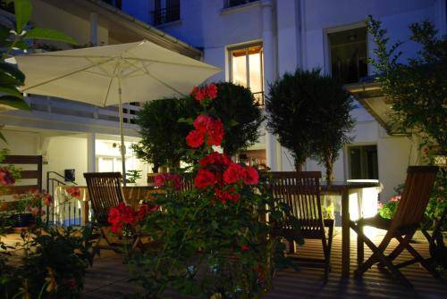 While some of the rooms at the Hotel Alhambra overlook the rue Malte, most open up to a giant courtyard garden that’s attractively landscaped and open to guests. During warm weather, you can enjoy meals, coffee or drinks among the greenery. (After midnight guests are supposed to keep the noise down. Rooms also have double-paned windows for soundproofing, although these will probably be open during the summer.)