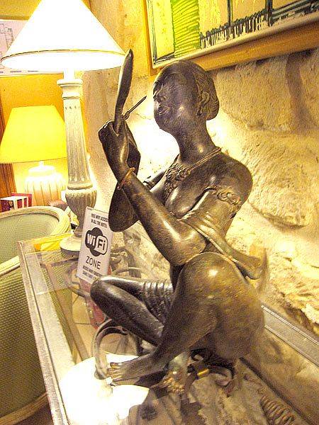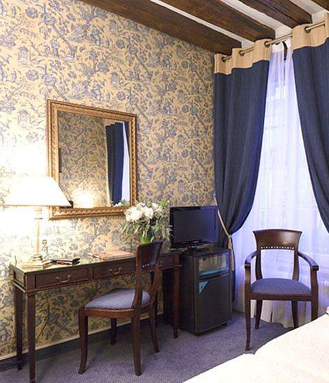 Guestrooms, outfitted with exposed wooden beams and opulent wallpaper (stripes, floral and toile, too), have an oversized dollhouse feel. Pattern-on-pattern, the décor is deliciously frou-frou. Note that some rooms are tight, but all are well equipped with air conditioning, a flat-screen television, minibar and phone. Free Wi-fi is available in all rooms.