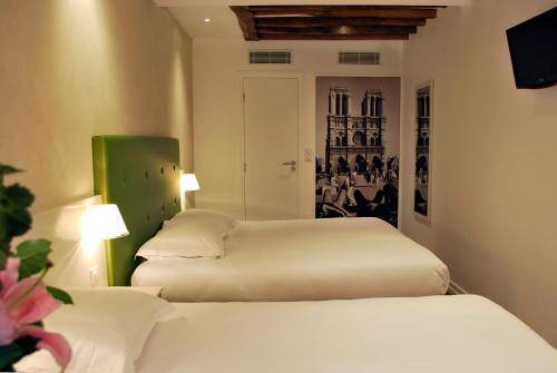 The new “superior” rooms have many of the trendy trappings you’d expect: oversized black-and-white Paris murals, modern furniture, and nice new and glassy bathrooms. All have air conditioning, TV, telephone, and Wi-Fi access. They also have rates that you’d expect to pay at boutique hotels around town, so don't be shocked by the price.