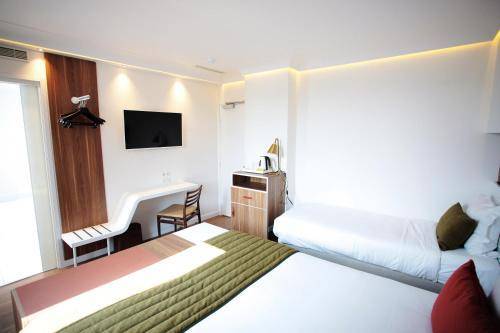 Recently, a new management team redid the joint with stylish carpets, beds, furnishing, and sparkling bathrooms. The look got an overhaul, too, with the “simple Formica furnishings” of yore giving way to slick modern pieces, snazzy striped wallpaper, framed prints, and chic what-nots. Don't get us wrong—it's fabulous. It's just much more expensive now, too.