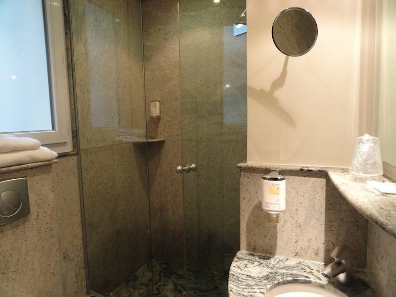 Bathrooms are also renovated and in great condition, with marble and glass throughout. All are equipped with a shower (no tubs available), cosmetic mirror and hair dryer.