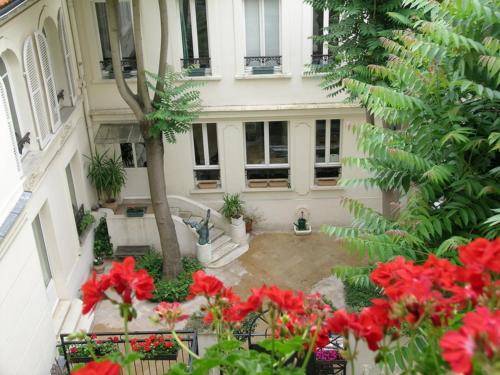 All rooms are equipped with a flat-screen TV, telephone and safe. Rooms facing the street have double-paned windows to block out noise, although the rue Delambre isn’t terribly busy. Back rooms look out over a nice courtyard (not some tiny air shaft). Fifth-floor rooms have small balconies (ask when reserving).