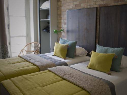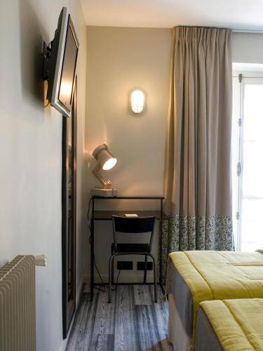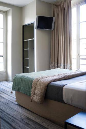 Each of the 42 rooms has a window facing a street, although only eight open directly onto the Place and the theater (ask ahead). Rooms are equipped with a flat-screen TV (with cable), free Wi-Fi and a telephone.