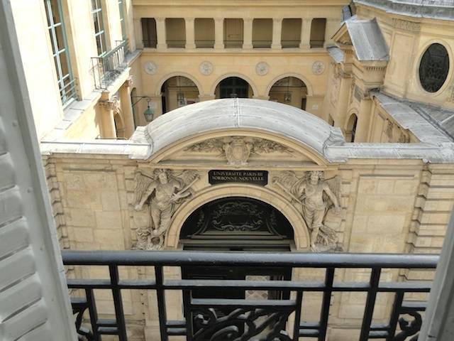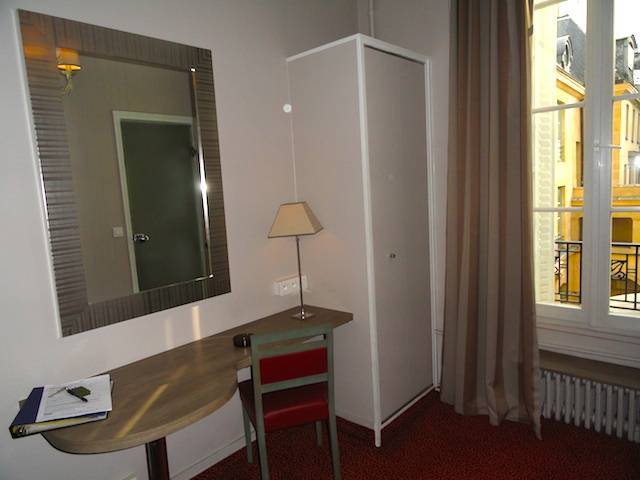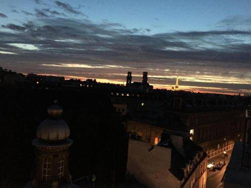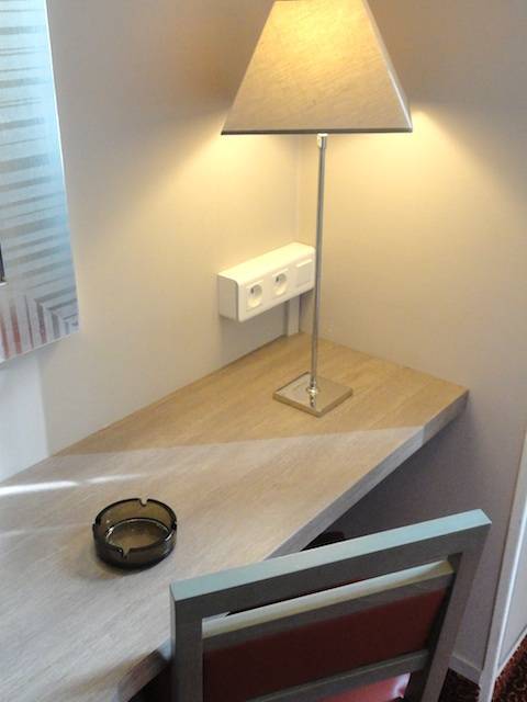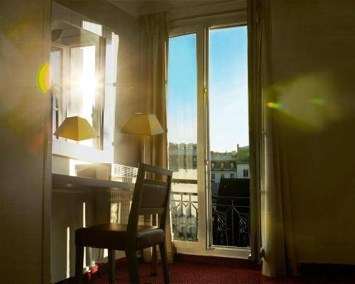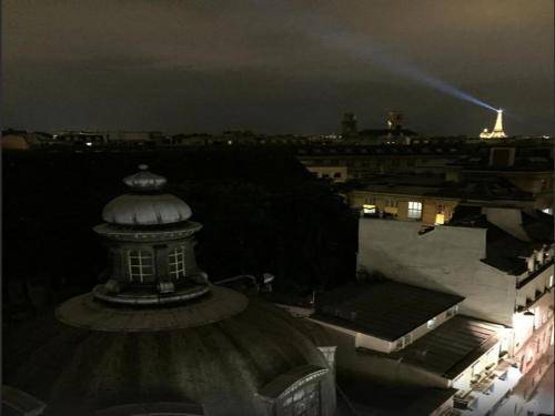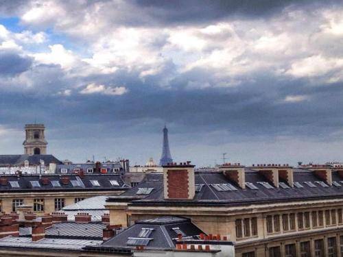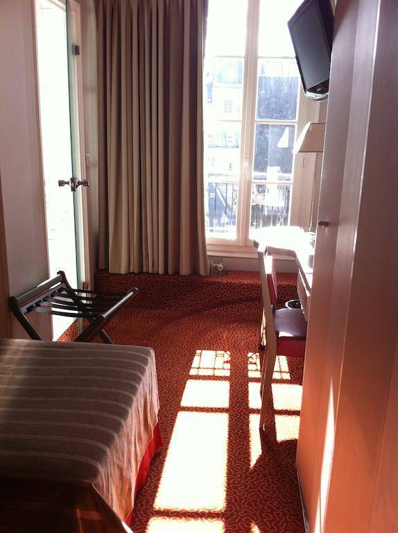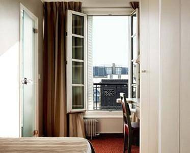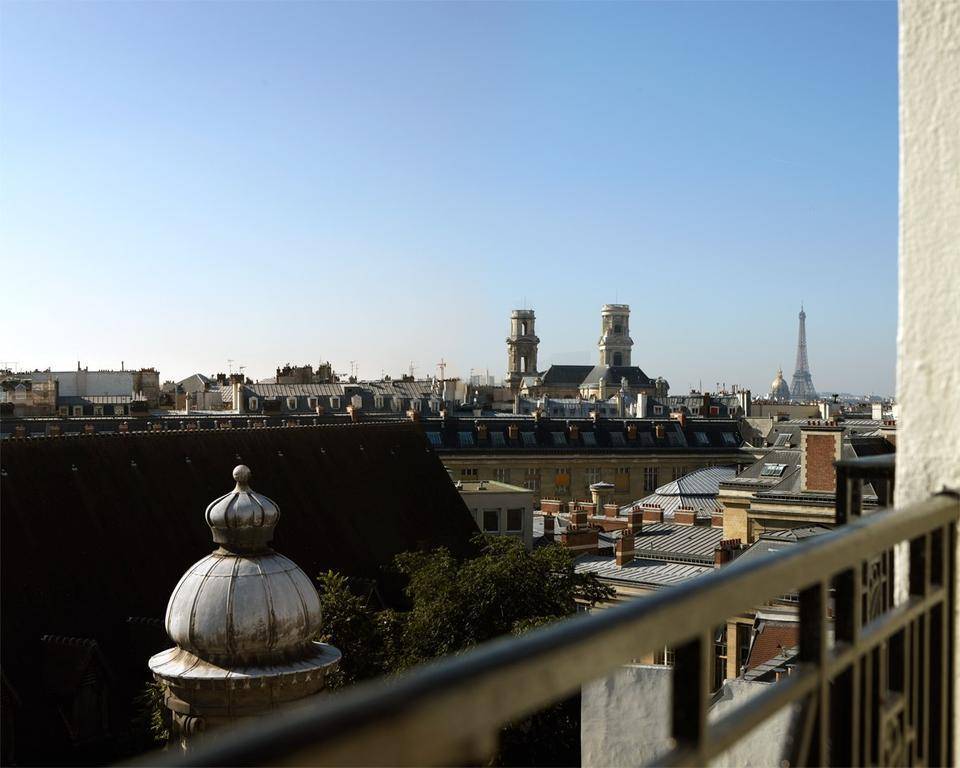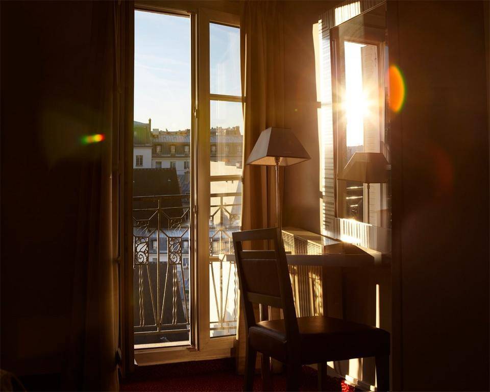 Rooms on the fourth floor have small terraces or balconies looking out to historic college domes, Notre Dame's towers, and even the Eiffel Tower (from room 41). Lower floors have larger rooms, but no views. Also, note that the hotel still leaves out ashtrays.