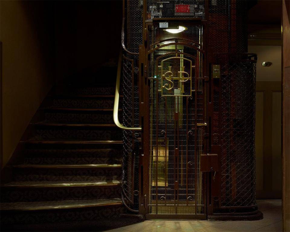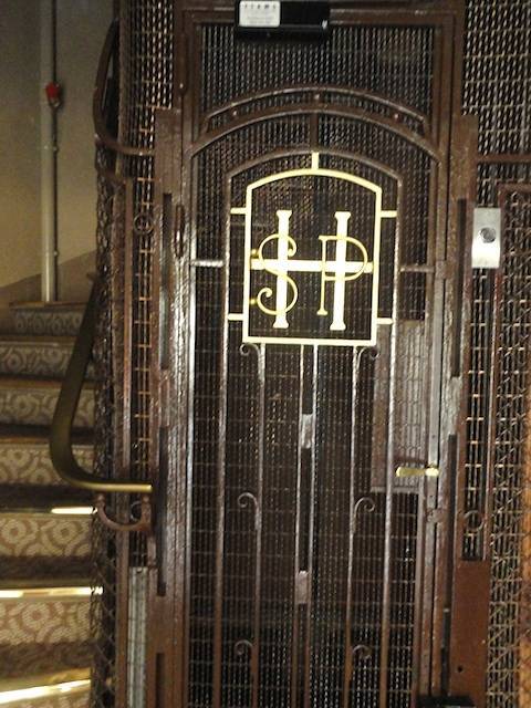 Downstairs, the modern lobby features a lounge and a lovely antique wrought iron elevator.