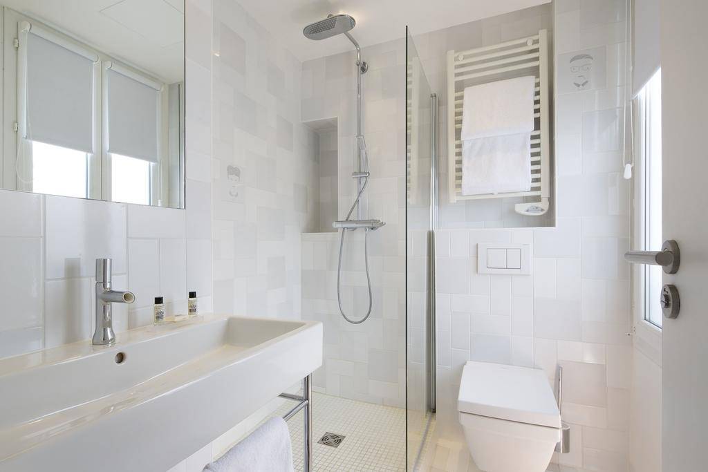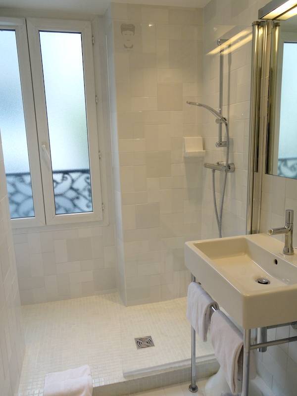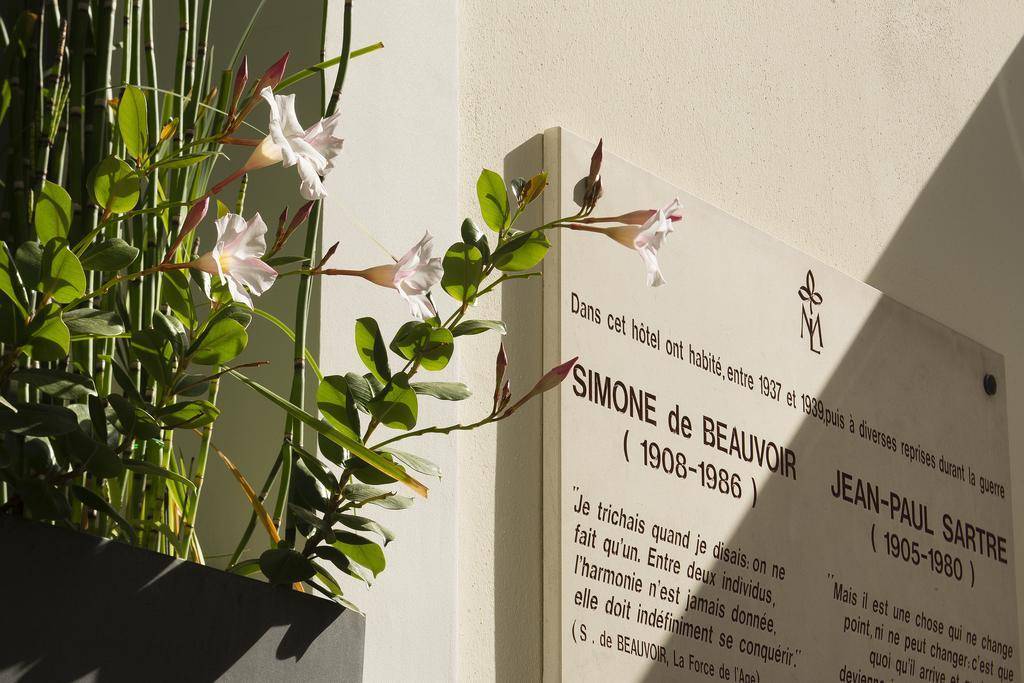 Bathrooms have also been gussied up significantly, and now offer slick white tiling, glass walls and premium toiletries. And if you feel like you’re being watched, you’re not losing it: A cartoony rendering of Jean-Paul Sartre or Simone de Beauvoir appears in one of the tiles in each bathroom. (The duo lived here between 1937-1939 and at various times during World War II.)