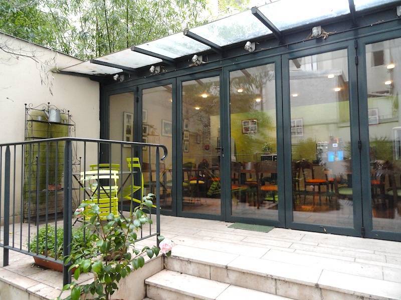 Downstairs, there’s a small sitting area. A continental breakfast buffet is served (for €14) in the next room, which opens onto a charming outdoor garden. The hotel's owners and desk staff struck us as very friendly and accommodating. (Guests checking out during our visit seemed quite pleased with their stay.)