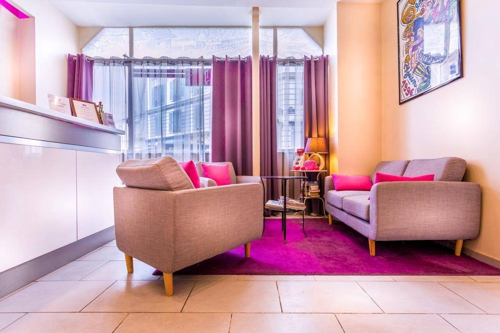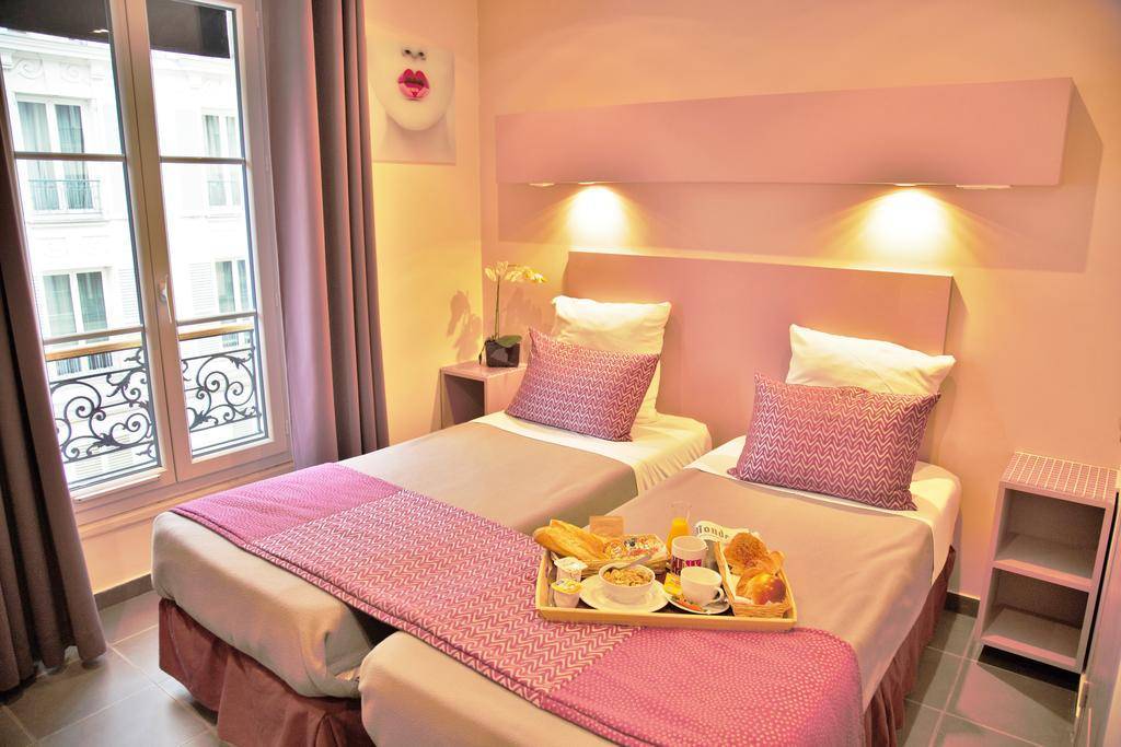 Though it’s not the most central location, The Pink Hotel is set on a quiet side street near a Metro station that provides connection to the bustling heart of Paris.
