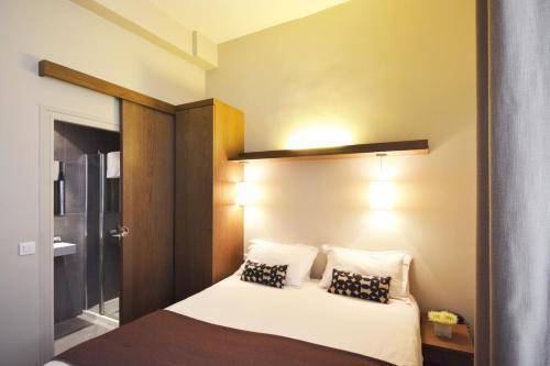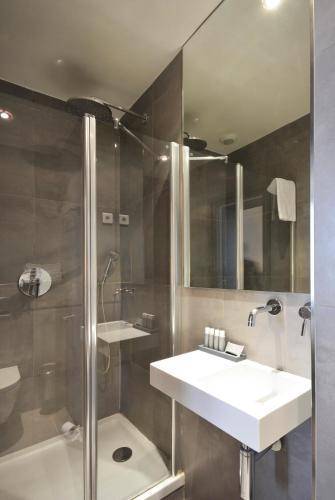 Rooms tend to be pretty tight, but sport chic, understated décor and are well equipped with perks like large flat-screen TVs, fluffy white duvets, air conditioning and Wi-Fi. Rooms on the third floor have wood-beamed ceilings, and bathrooms throughout have swanky glass-walled showers.