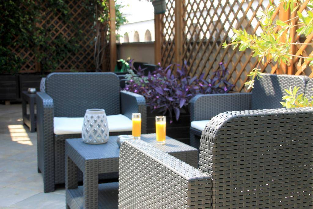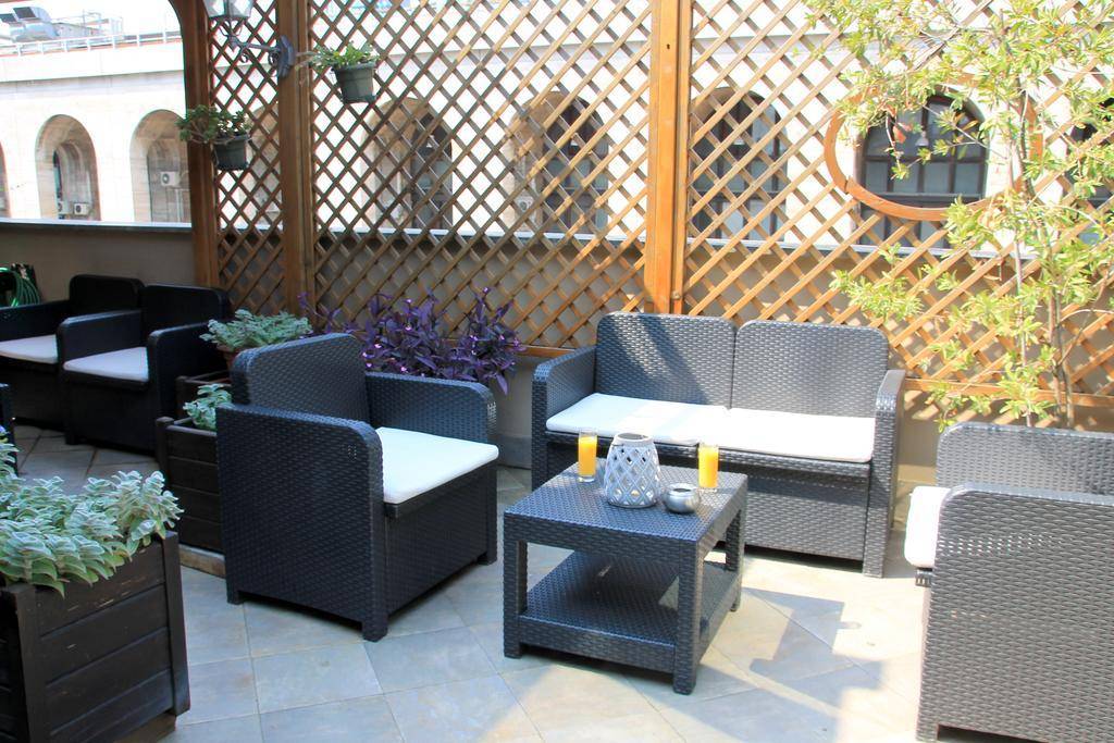 The Aphrodite’s top floor features a bright dining area and a pleasant, leafy rooftop terrace — a nice spot for lounging under a beach umbrella. The view, mainly overlooking Termini Station, isn’t exactly the greatest in the world, but potted flowers and lattice-work give the space a lovely “garden-y” feel.