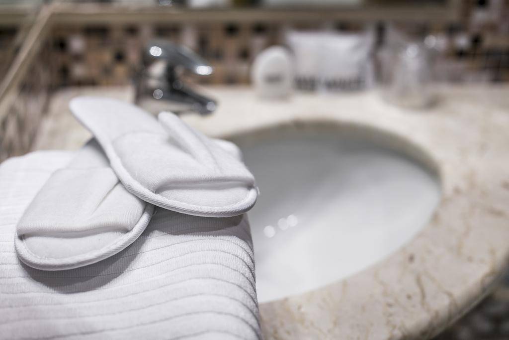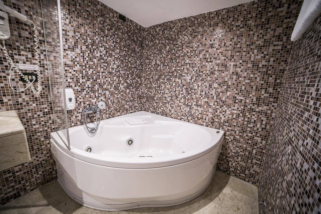 The private bathrooms at the Hotel Aphrodite are a treat with rich mosaic tiling, toiletries, a hairdryer and bidet. The showers are reasonably sized, and a couple (more expensive) rooms offer a Jacuzzi tub.