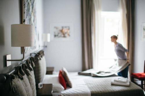 Rooms recently underwent some upgrades and now sport modern designs, and you’ll find all of today’s creature comforts, such as free Wi-Fi, flat-screen televisions, minibars and air conditioning. Private bathrooms are sparkling clean. One room offers courtyard views, while the remaining rooms look out onto the street.