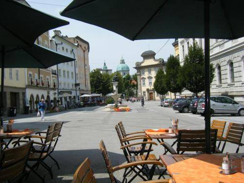 There's a classic Stube (pub) restaurant on the first floor complete with antlers, rifles and oil paintings mounted proudly on the walls. In the summer there's a garden where diners can soak up the vibe of Kajetanerplatz.