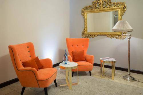 The easy elegance of Amadeus' rooms lies within their furnishings and well-tempered color palettes. Recent renovations have added stylish wall art and other decorative flourishes in each room. You may find modern, tufted chairs and wood coffee tables or gorgeous vintage headboards, depending on your room. All rooms have en suite bathrooms and satellite TV. Larger apartment spaces are also available.