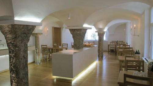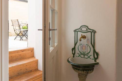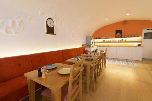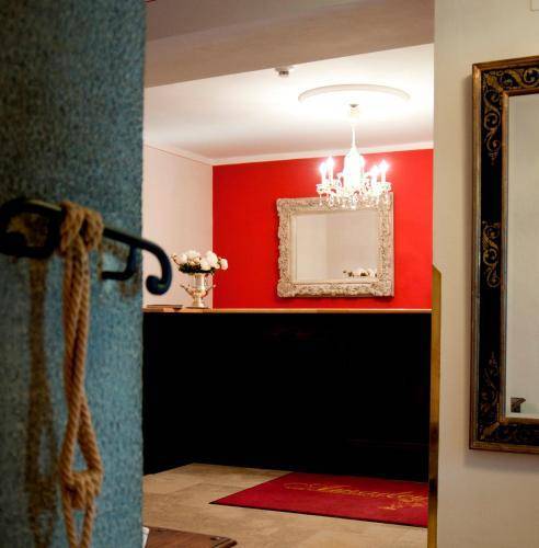 As indicated by the painted mural on the building's façade, Amadeus was a bathhouse during the 16th century. The original vaulted ceilings have been preserved in the lobby.